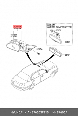 87620-3F110 HYUNDAI KIA Зеркало в сборе-наружн. задн. вида,прав., условия доставки и стоимость: