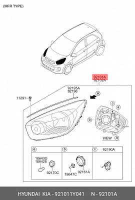 Для запчасти 92101-1Y041 HYUNDAI KIA Фонарь в сборе-фара, лев. неоригинальные аналоги не найдены