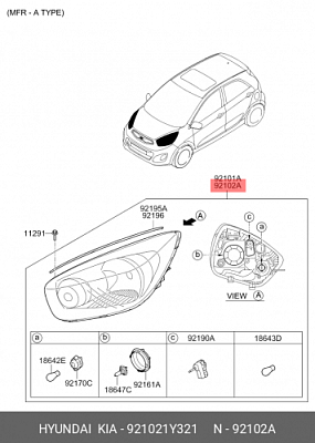 92102-1Y321 HYUNDAI KIA Фонарь в сборе-фара, прав., условия доставки и стоимость:
