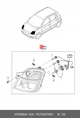 Для запчасти 92102-07041 HYUNDAI KIA Фонарь в сборе-фара, прав. неоригинальные аналоги не найдены