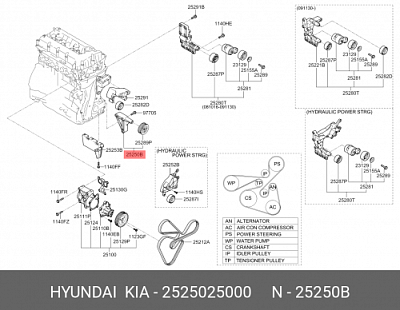 Для запчасти KM0800034 KAP Ролик обводной ремня ГРМ 2528725100 (Корея) неоригинальные аналоги не найдены