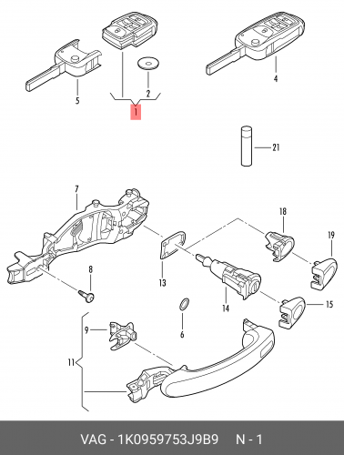 7M4800375AB VAG 1 к-т личинок замка для ручки двери, двери багажного отсека, замка зажигания и крышки вещевого ящика